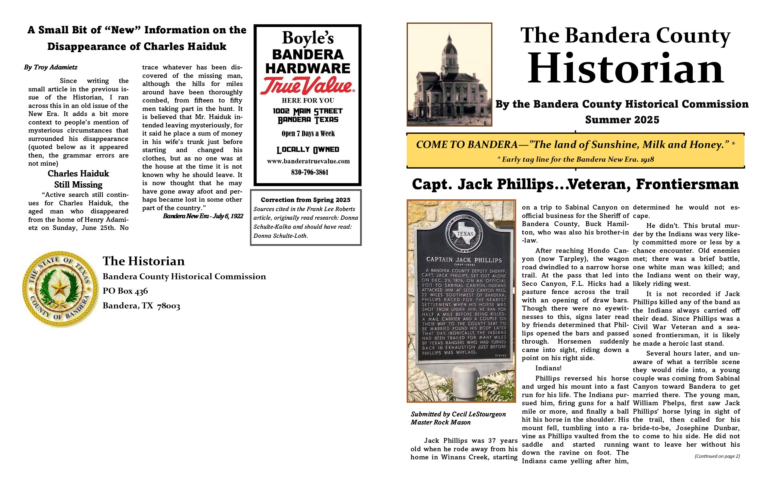 Summer Edition of the Historian now Available at the Frontier Times Museum for $2 or email us at